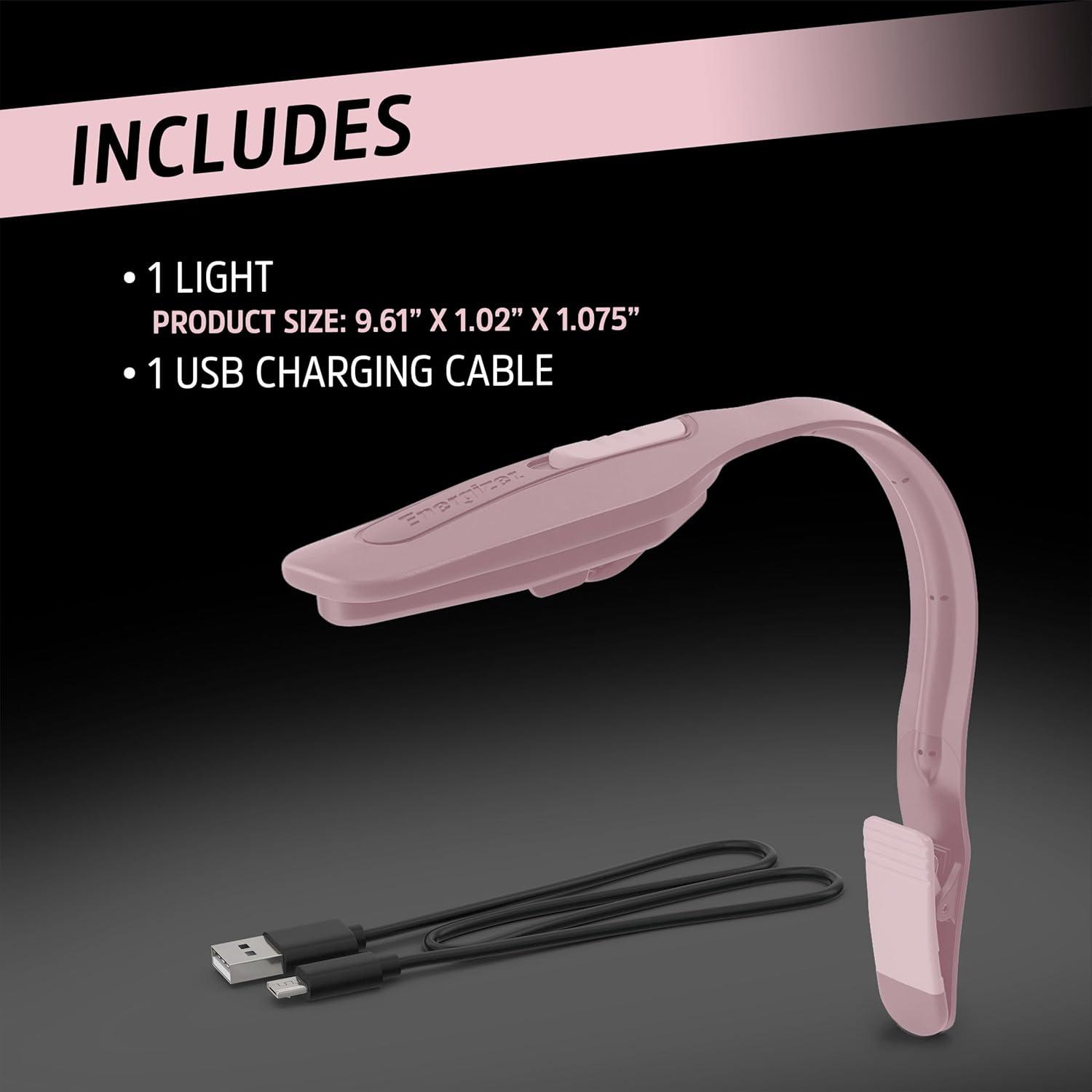Energizer Flex-R LED Rechargeable Book Light for Reading in Bed, Reading Light with Warm LED Color, Long-Lasting and Lightweight, Pink