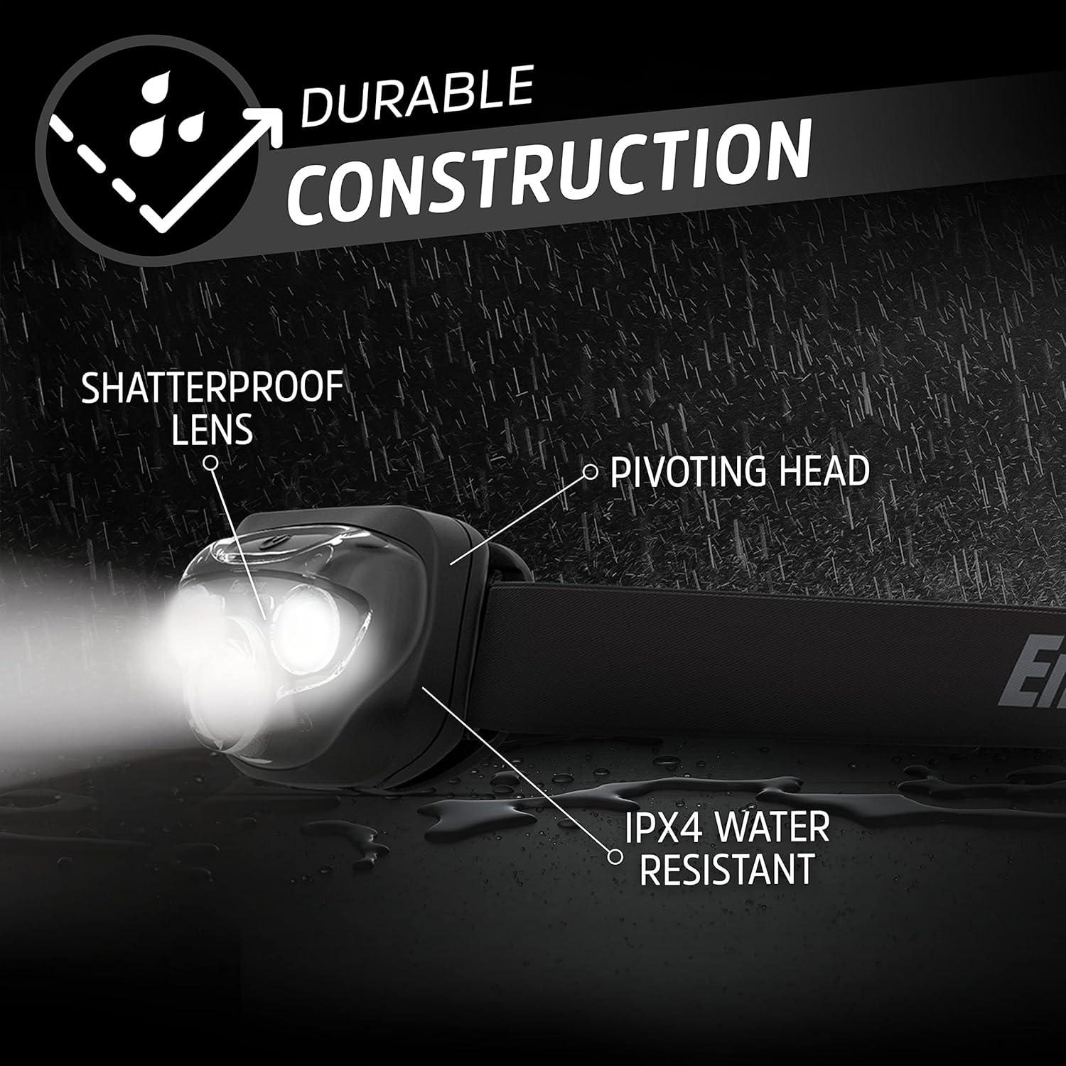 [Headlamp LED Light]: Two (2) Energizer Vision HD + LED Headlamp offers a hands-free, bright LED light with a long runtime for extended use