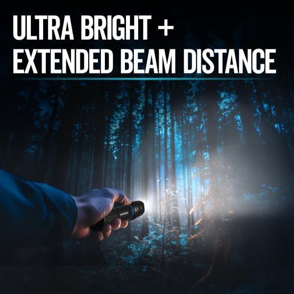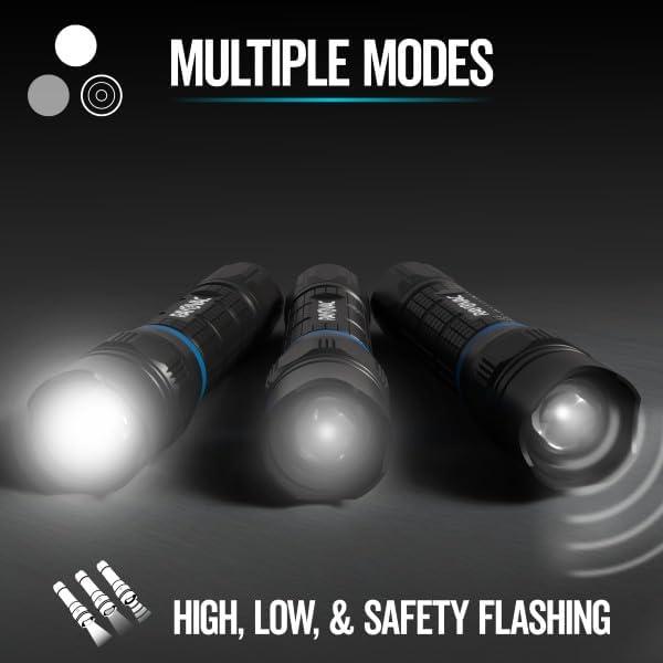UP TO 4X BRIGHTER THAN STANDARD LED TECHNOLOGY: Each bright flashlight emits up to 400 lumens of LED light on High, with an extended beam distance of up to 185m