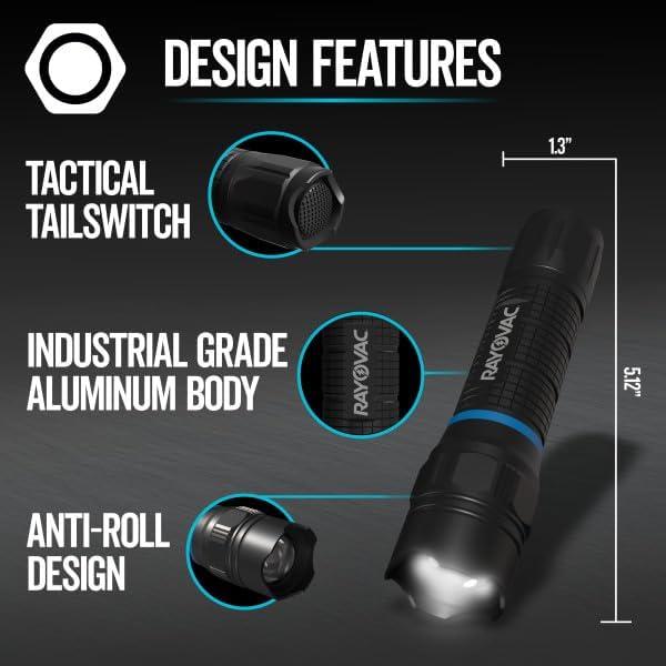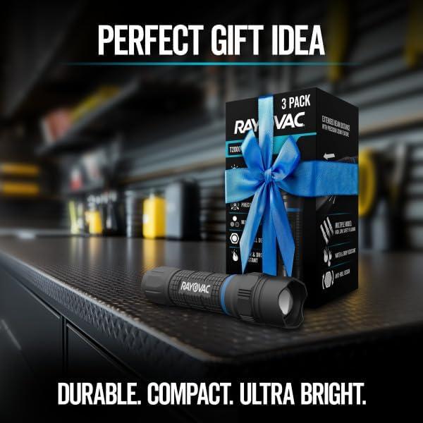 ONE 3-PACK OF RAYOVAC T2000 TACTICAL LED FLASHLIGHTS: Conveniently small flashlights that offer powerful brightness in a compact yet durable form factor