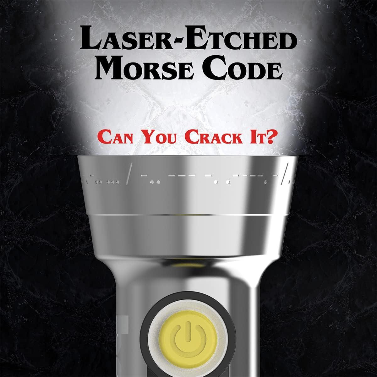 Step into the world of Stranger Things with the official Energizer Stranger Things Squawk Retro LED Flashlight. Inspired by the original 1980s model, this collectible retro flashlight combines nostalgic design with modern LED performance. With 250 lumens of brightness, a beam distance of 85 meters, and up to 7 hours of runtime, you’ll have powerful, reliable light wherever your journey takes you. The LED light bulb of this battery flashlight is 12X brighter than standard LED technology. This isn’t just any large flashlight. It’s packed with nods to Season 5, including a laser-etched eagle and the WSQK radio station emblem. Switch from bright white to UV mode on this metal flashlight and shine it on the packaging and bonus insert to uncover secret clues and hidden messages related to the new season. Built for adventure, the heavy-duty ribbed aluminum body of this camping flashlight is IPX4 water-resistant and drop-tested to survive up to one meter. The flash light operates on 2 D batteries or 2 AA batteries (with 2 AA adapters included) and features a handy hanger ring for convenience. Whether you're a diehard Stranger Things fan or a collector, this is the must-have torch light to commemorate the epic conclusion of Stranger Things.