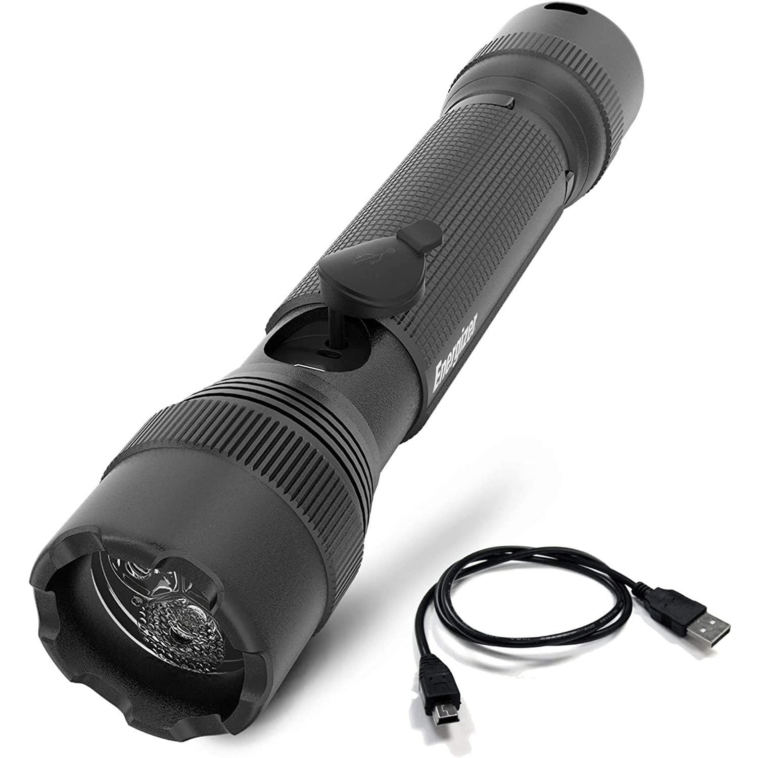 Energizer Rechargeable LED Flashlight X1000, Hybrid Power Capability, Ultra Bright 1000 Lumens, IPX4 Water Resistant, Rugged Aluminum Tactical LED Flash Light (USB Charging Cable Included)(Grey [Rechargeable 1000 Lumens])