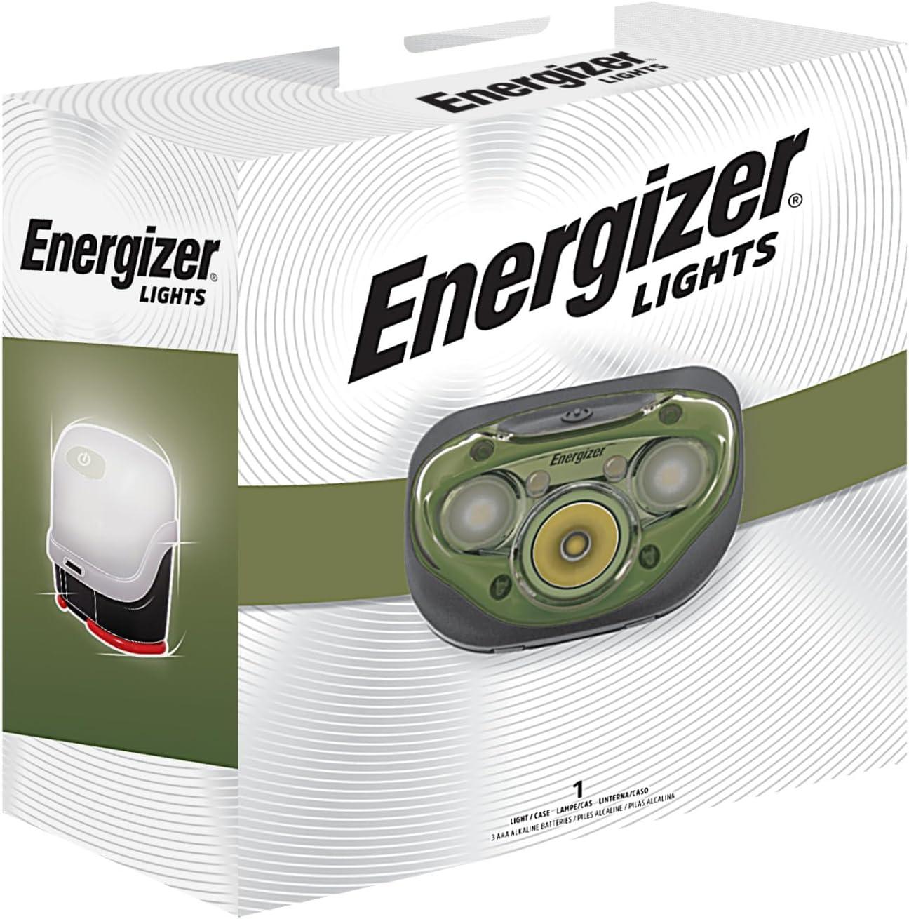 [POWERFUL HANDS FREE LIGHT]: Direct light where you need it while keeping both hands free with the Energizer Vision HD+ LED Headlamp & Lantern Case. Includes three (3) Energizer MAX AAA alkaline batteries