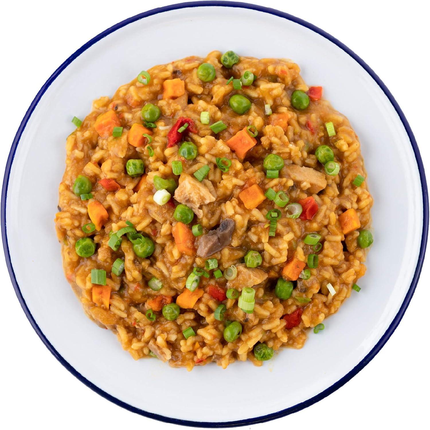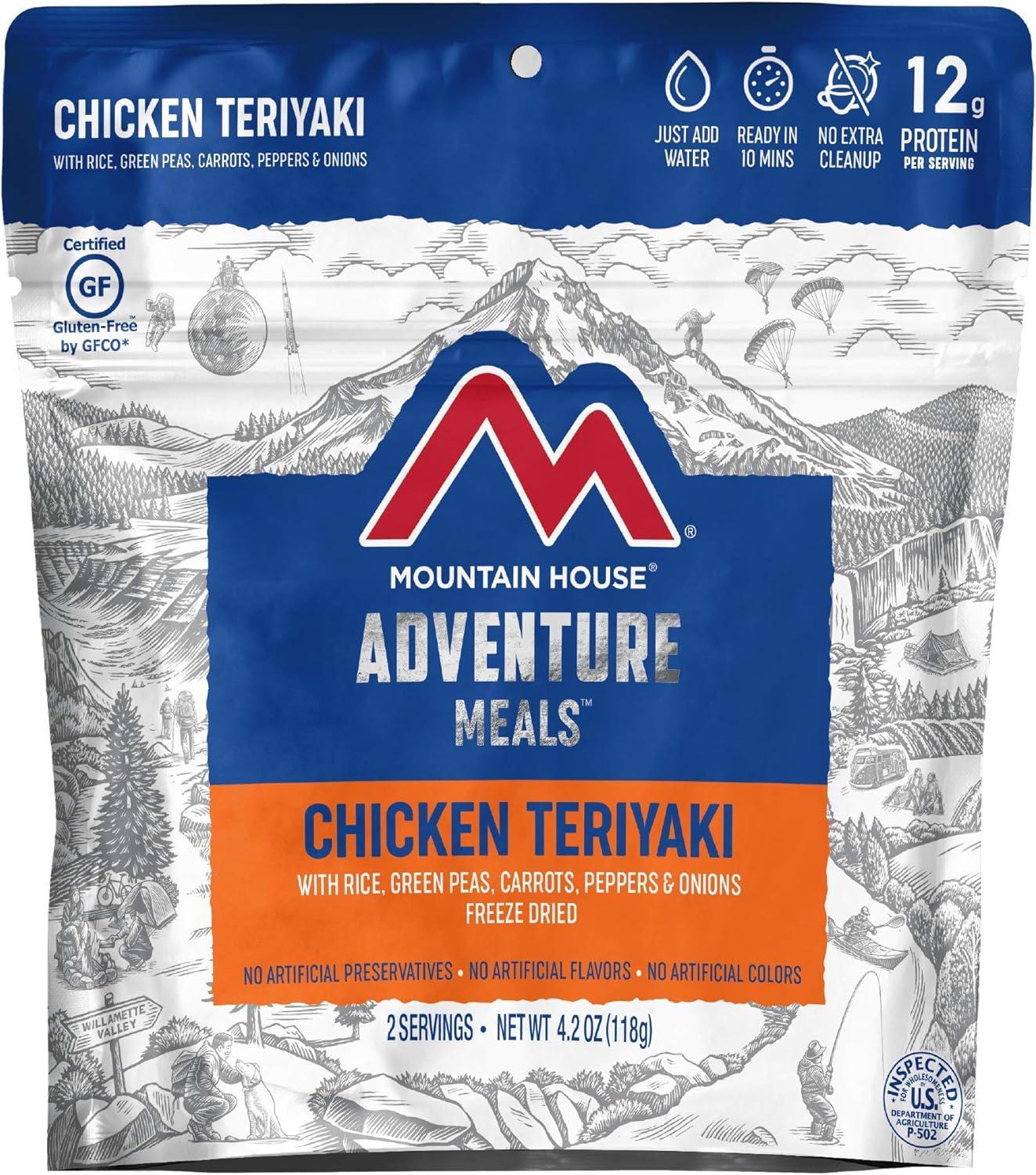 Gluten-free Mountain House chicken teriyaki with vegetables and bamboo shoots reconstitutes with hot water in under 10 minutes.