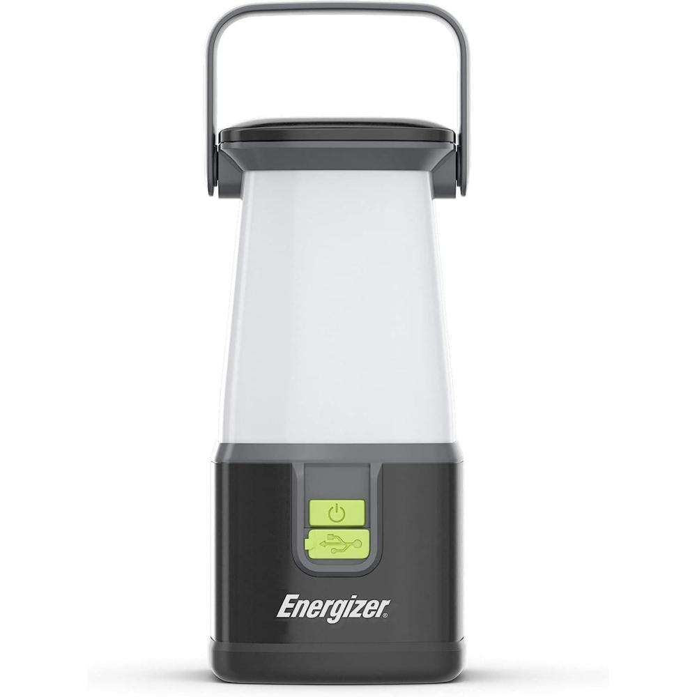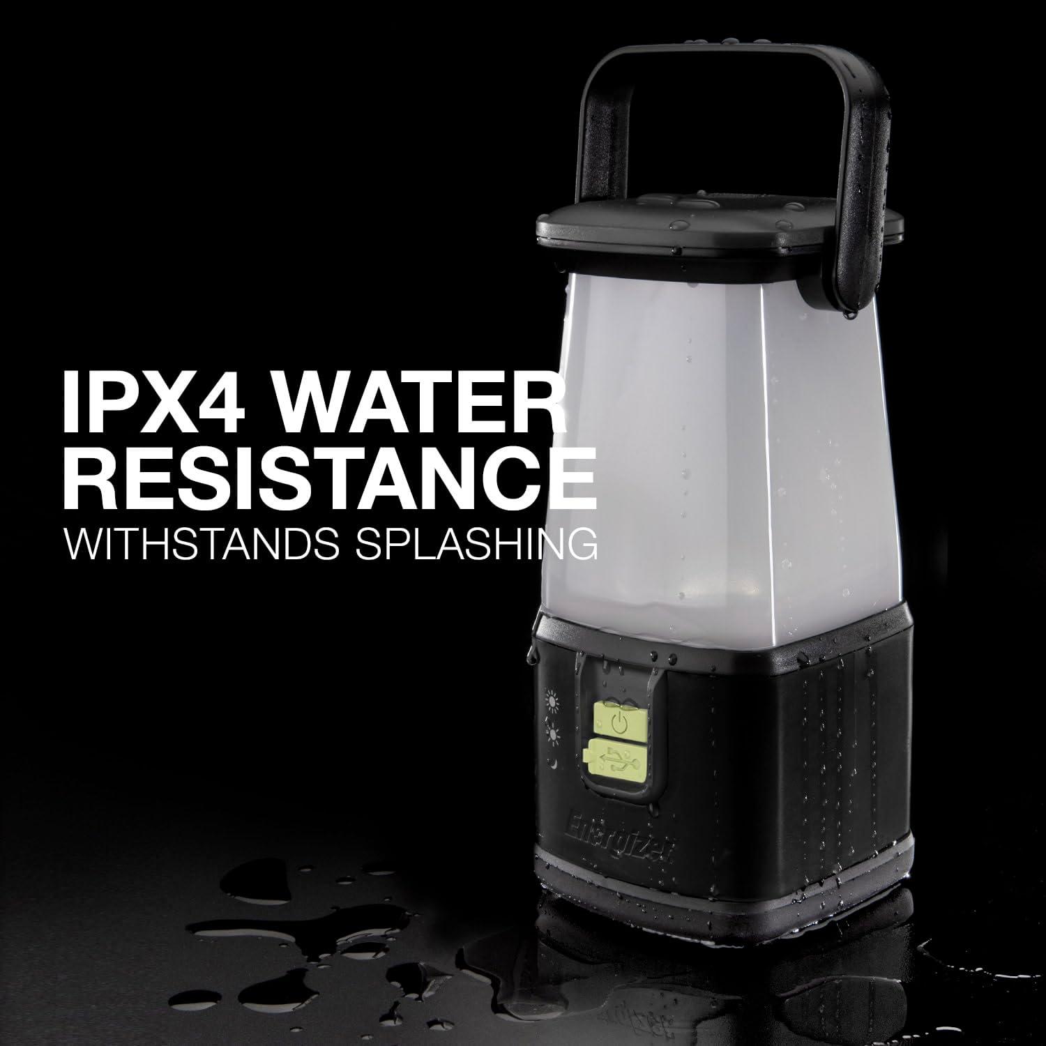 Energizer 360 Degree LED Emergency WeatheReady Lantern is a powerful battery powered lantern. The Energizer LED lantern runs on AA or D batteries for hands free all-around light. Turn the LED light on high for 500 lumens of light for up to 30 hours*, or use energy saving mode to maximize run time. Use night mode for a soft night light lantern. A glow-in-the-dark switch on this emergency lantern makes switching between modes easy. Trust this reliable water resistant lantern to make life easier during an unexpected outage. It has a USB port out for device charging. *using 3 D Energizer batteries
